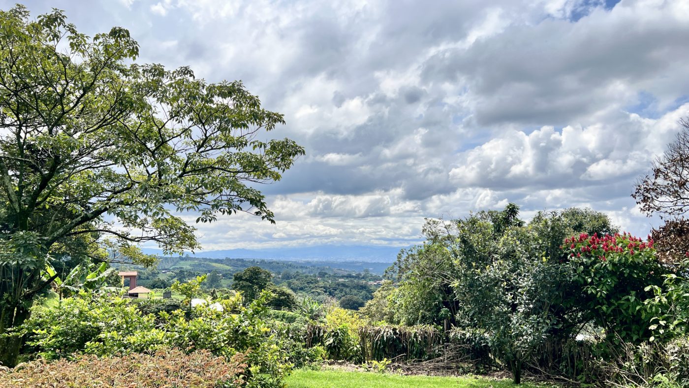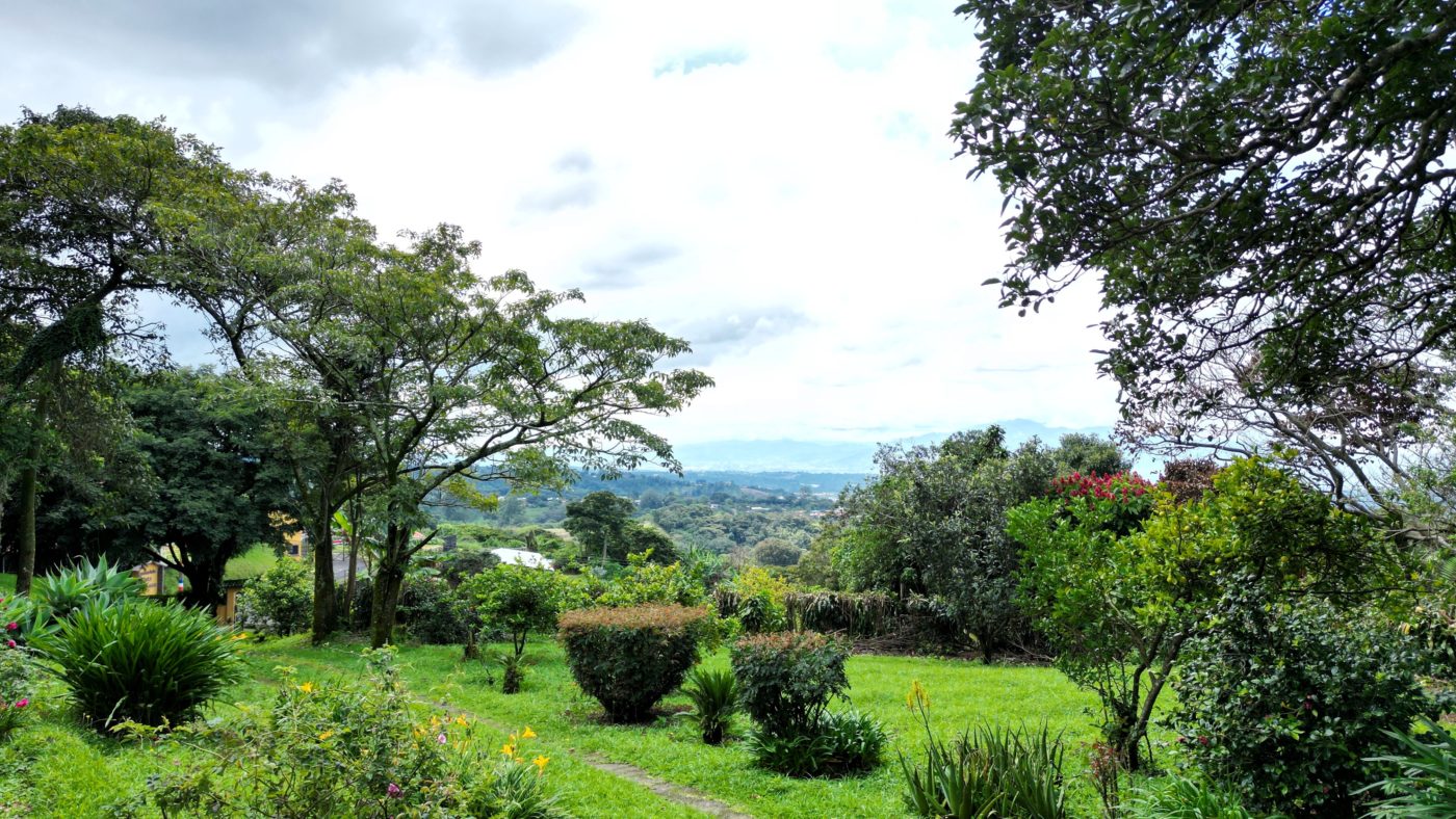 El terreno mide 3.612 m² y está rodeado de árboles frutales, jardines y vegetación exuberante que crean un ambiente de paz y privacidad. Desde diferentes puntos de la propiedad se disfrutan vistas panorámicas al Valle Central y a las montañas, un verdadero espectáculo natural.