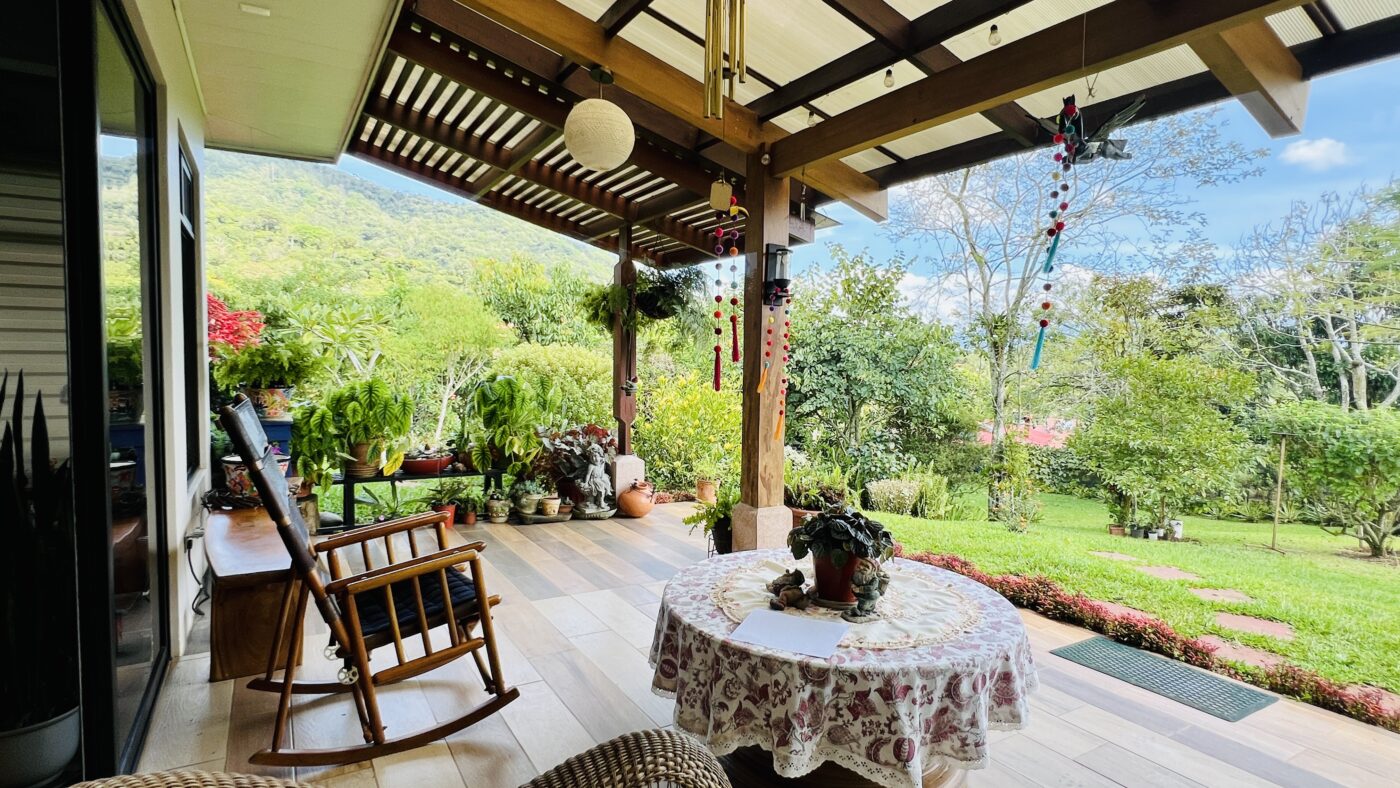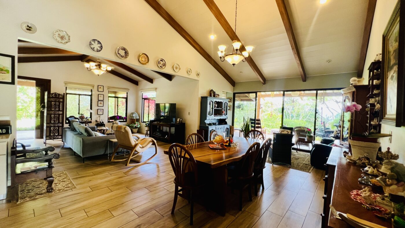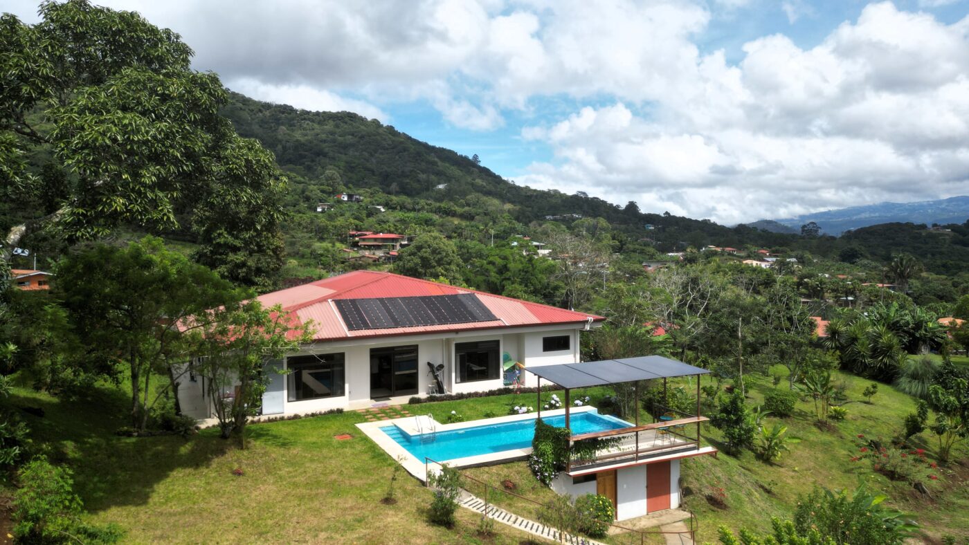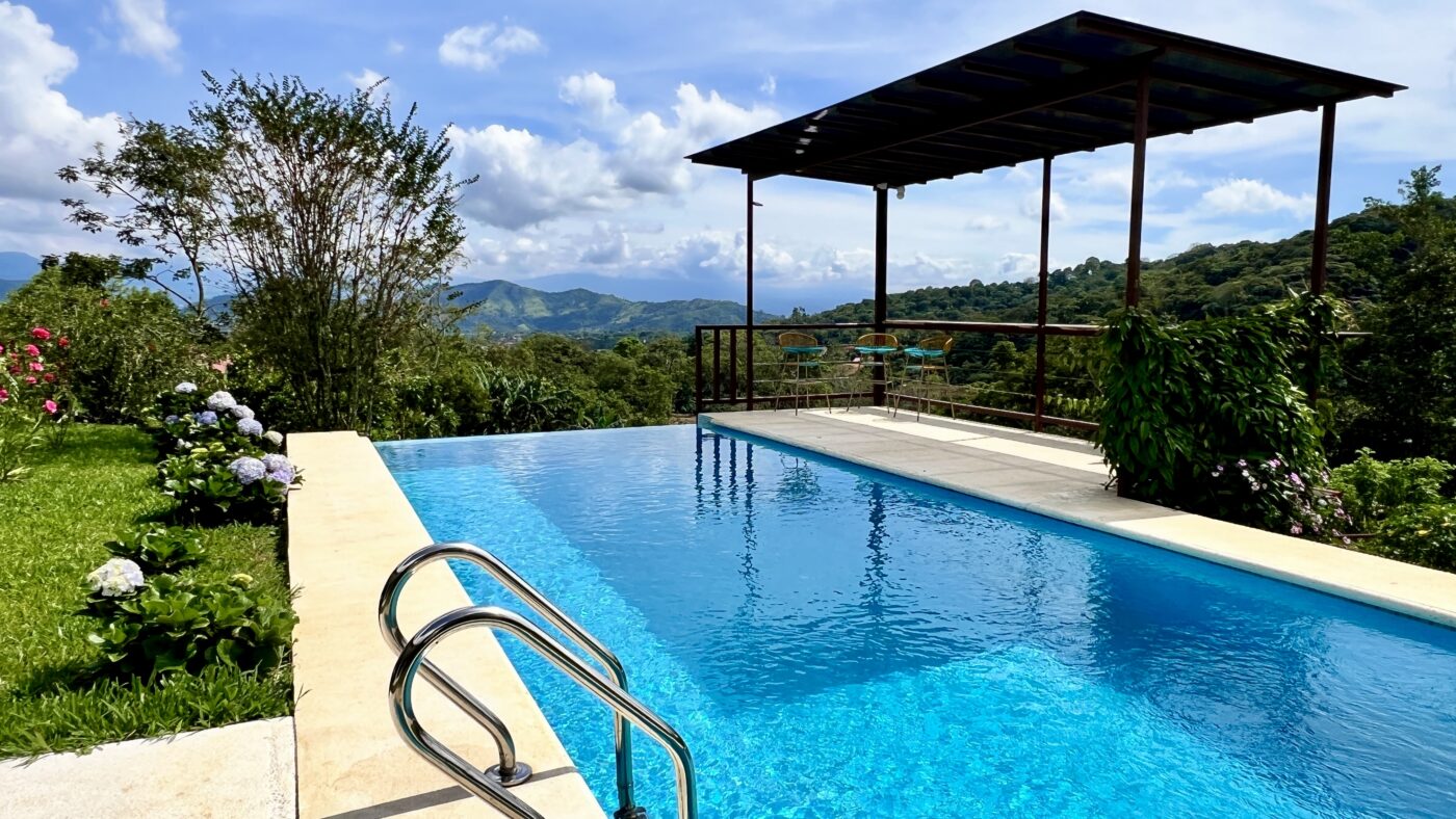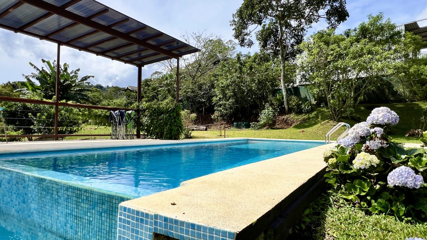 En el exterior, la propiedad invita al disfrute de la vida al aire libre. Posee dos terrazas, una en la entrada y otra lateral, donde podrás relajarte y admirar las hermosas vistas a las montañas. La piscina tipo infinito es sin duda uno de los grandes atractivos: perfecta para disfrutar del clima cálido de Palmares y espectaculares vistas.