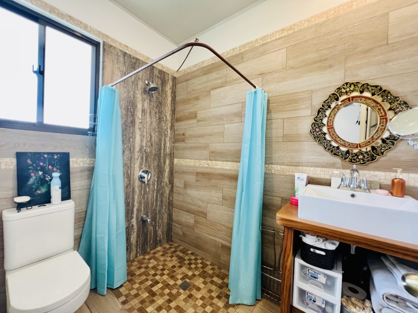 The house includes two bedrooms, both with private bathrooms. The primary bedroom stands out for its generous size, walk-in closet, and spacious bathroom, while the guest bedroom also offers comfort, privacy, and its own bathroom. There’s also a half bathroom conveniently located in the social area for guests.