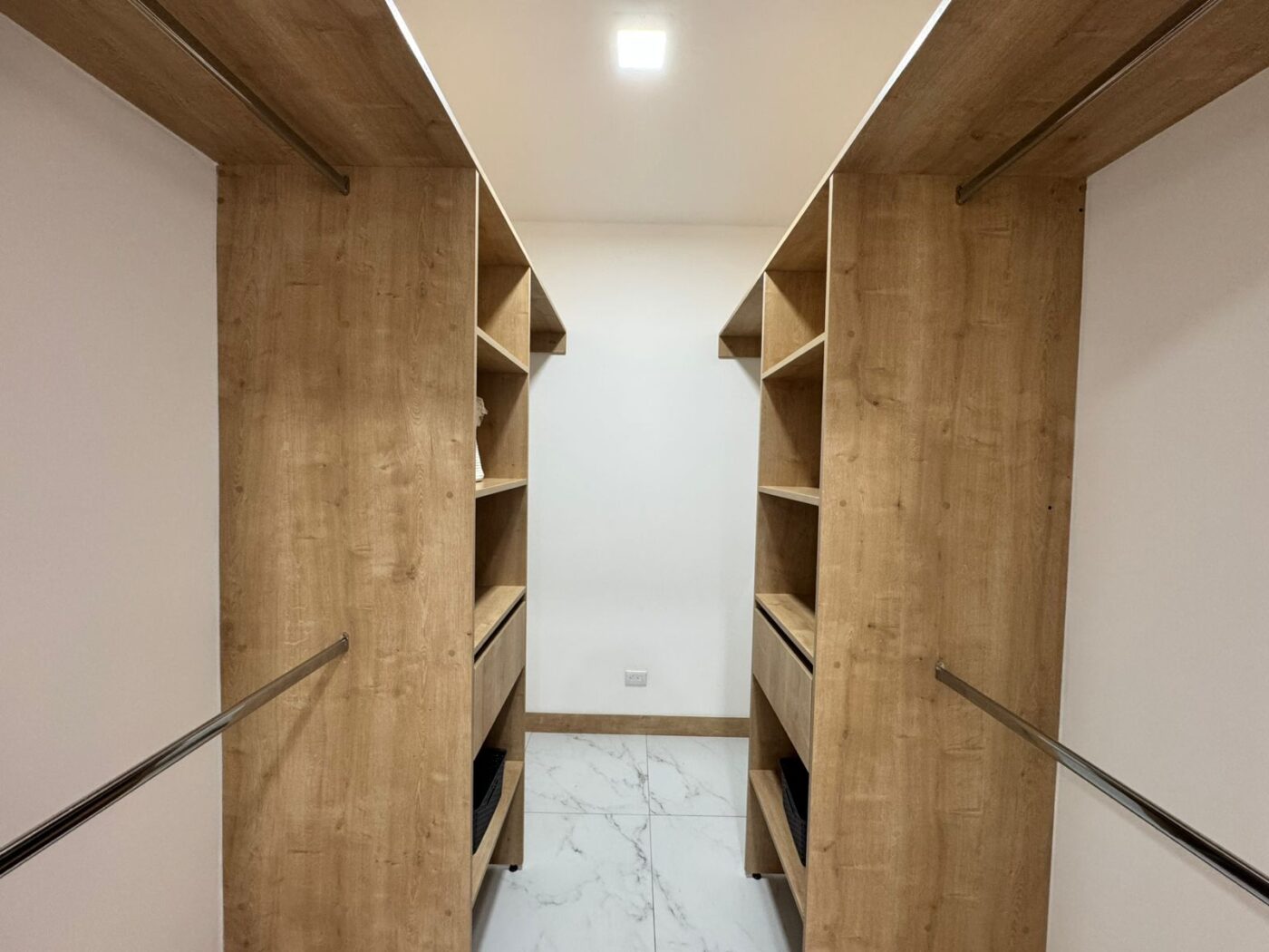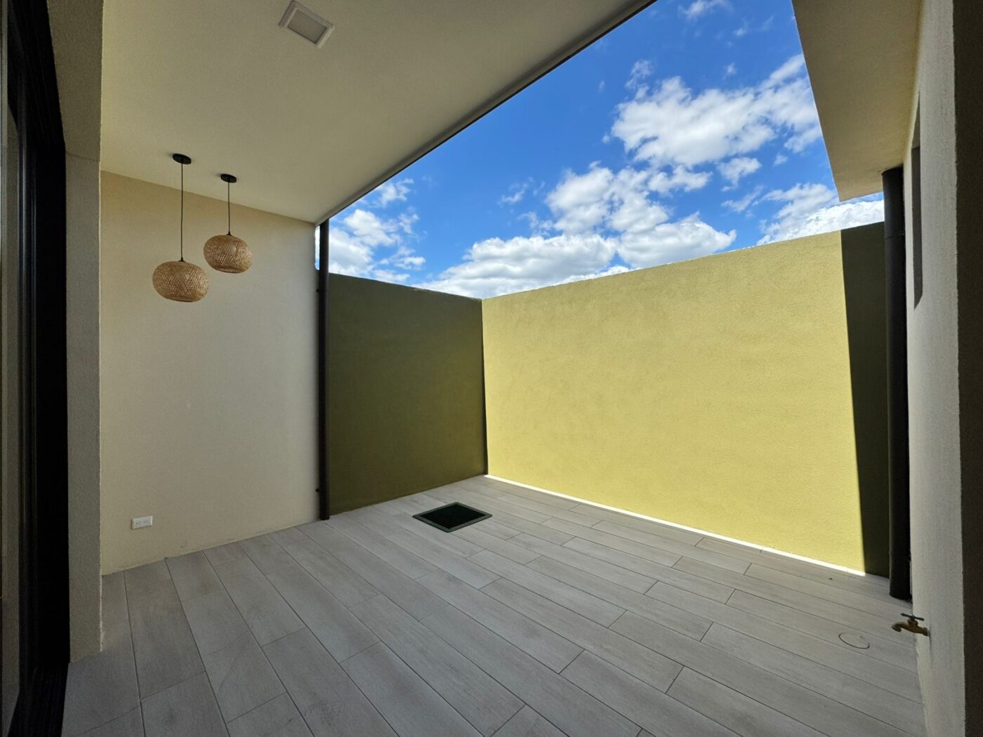 La casa cuenta con un medio baño para visitas y dos habitaciones amplias, cada una equipada con walk-in closet y baño privado, ideales para brindar privacidad y confort. Además, dispone de agua caliente y aire acondicionado, asegurando bienestar durante todo el año.