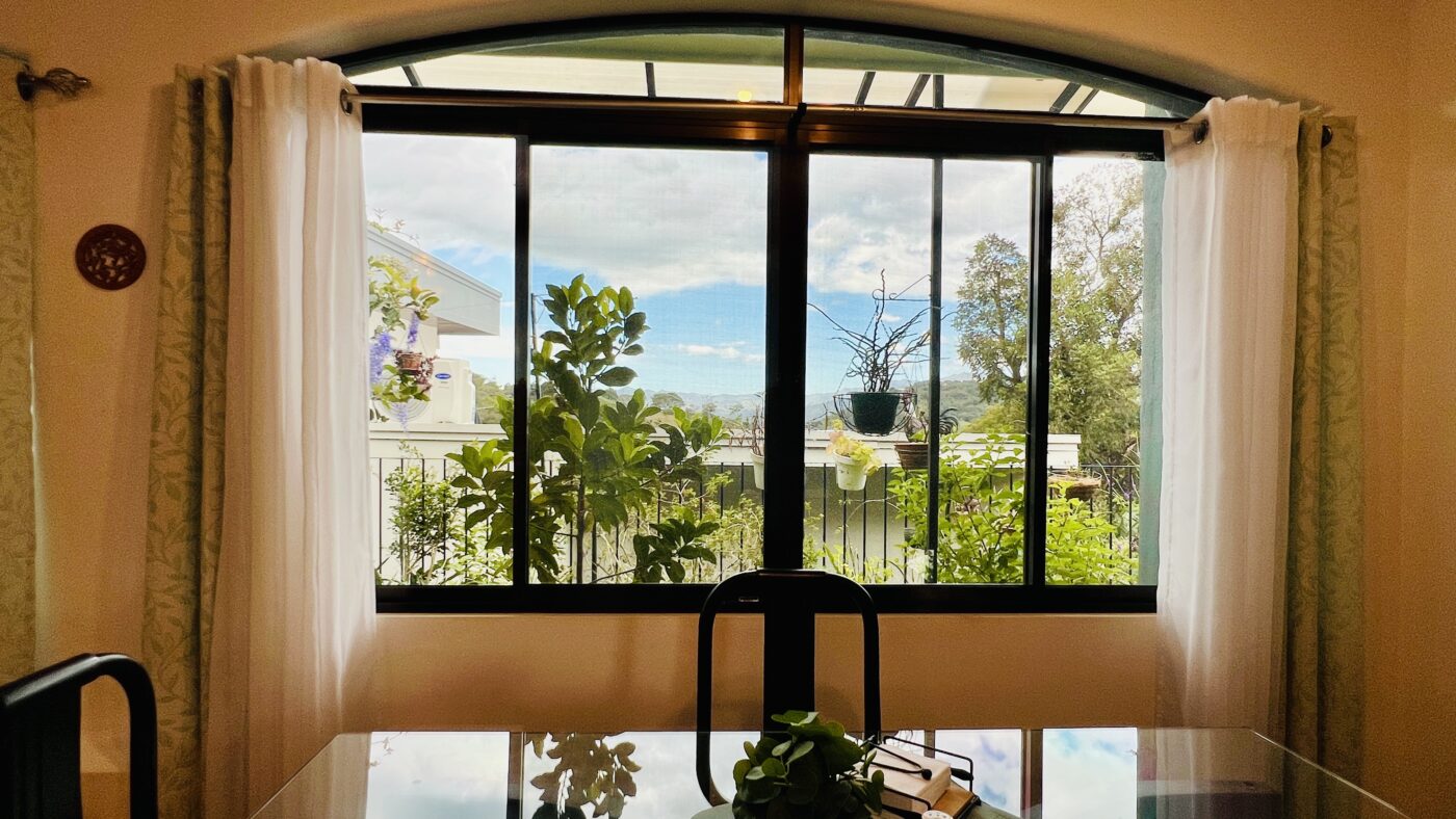 The house is situated on a 0.25-acre lot, surrounded by mature gardens and fruit trees, including avocados, tangerines, and lemons, as well as flowers that attract hummingbirds and butterflies.