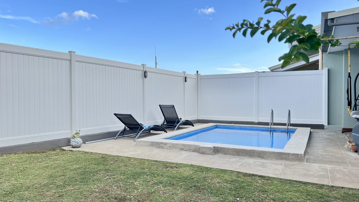-Backyard with private pool and green area.