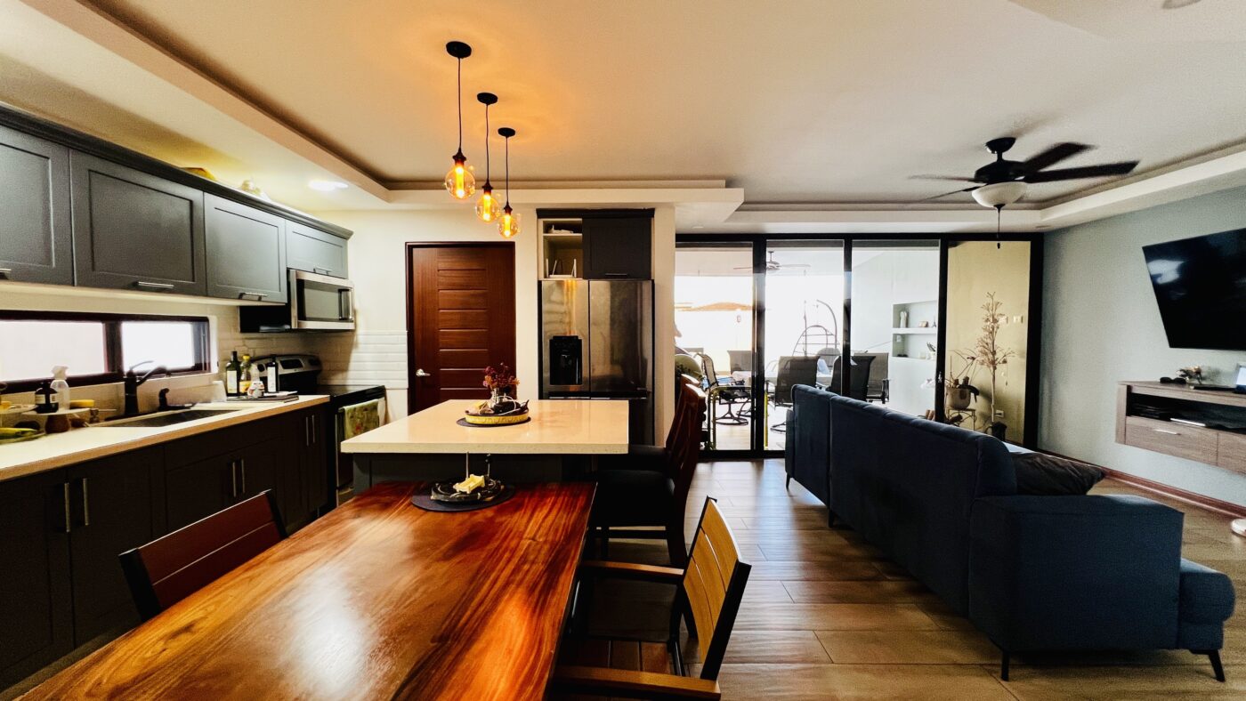-Integrated open-concept living room, dining area, and kitchen.
