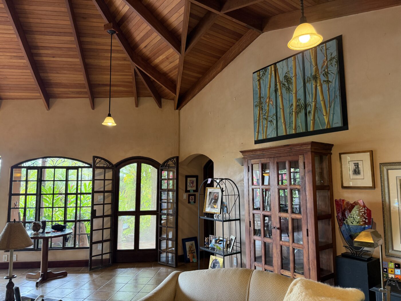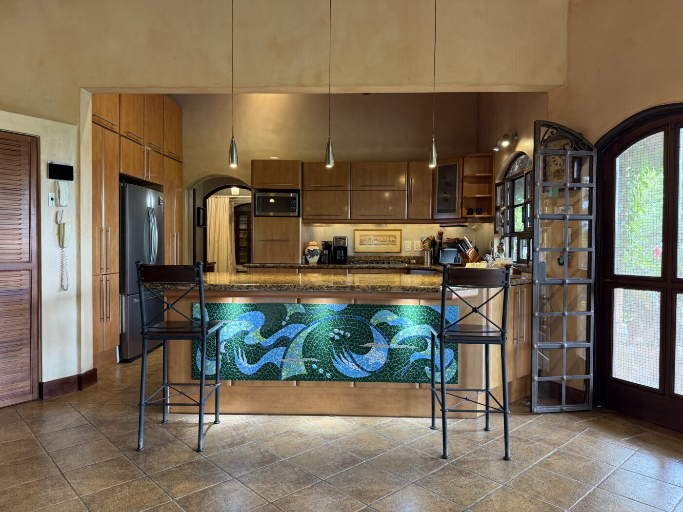 Esta hermosa casa fue construida con atención a cada detalle. Le sorprenderán gratamente las numerosas características y detalles que ofrece. El magnífico techo personalizado está hecho de madera de cedro amargo con vigas de almendro, ambas consideradas entre las maderas más robustas y bellas que existen. Otros detalles artísticos que podrá apreciar son las placas de mosaico en los pomos de las puertas exteriores, las puertas de vitrales y las obras de arte integradas en toda la casa. Las puertas, bellamente elaboradas a mano, dan acceso a las amplias terrazas a ambos lados de la casa.