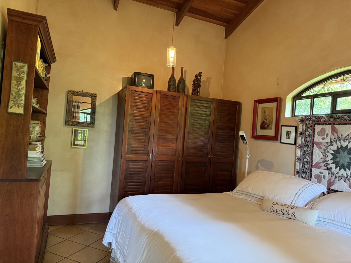 Outside is a nice storage area as well as a green house! The laundry and additional storage is located on the large back terrace, easy to get to from anywhere in the house. There are trails to the river below from the house. This property is 1.25 acres, nearly all of it is forested which brings in all of the wildlife. You will see monkeys, toucans, agoutis, pizotes and lots of other jungle animals!