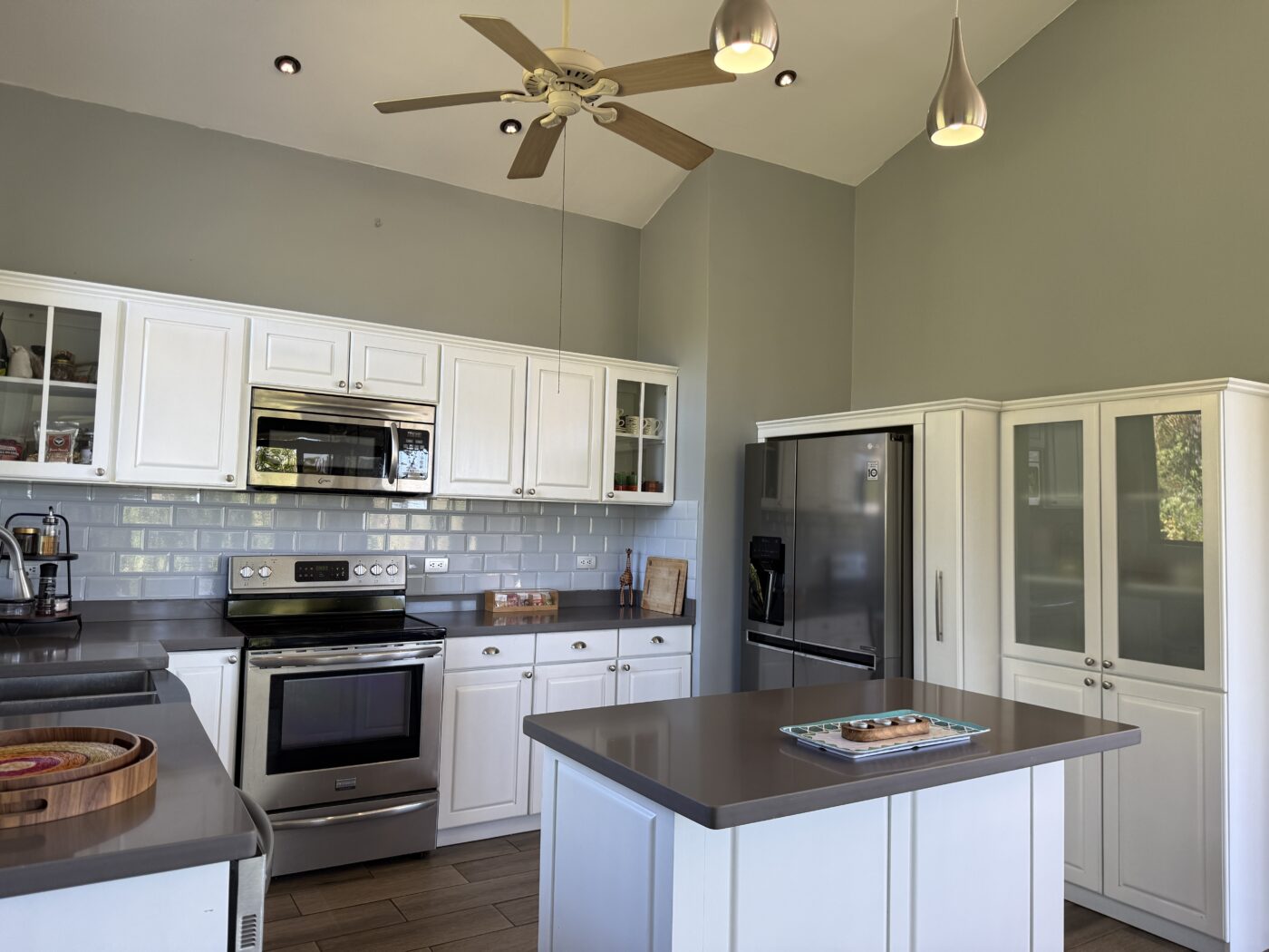 The house has fiberoptic internet, a solar hotwater heater, and AC split units. Just off the great room is the laundry room, there is lots of storage here!