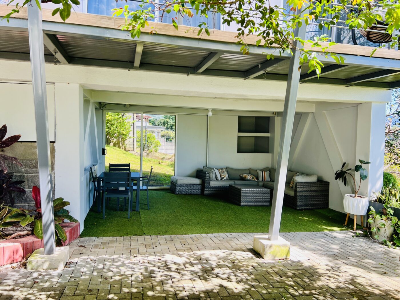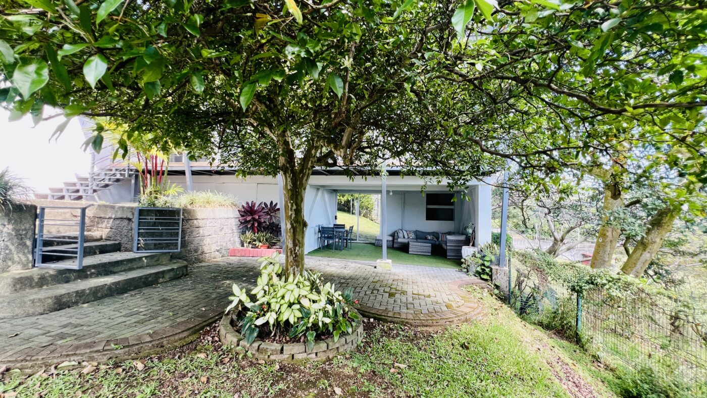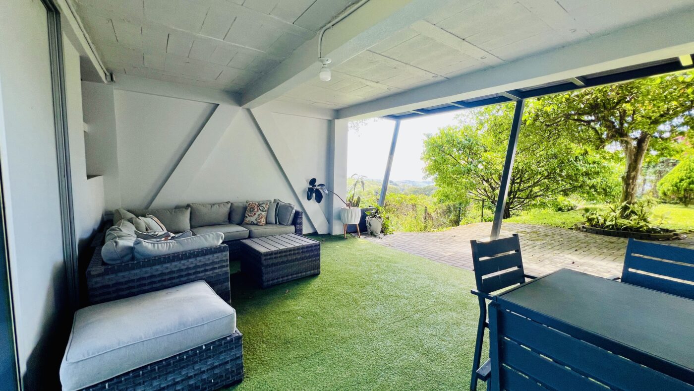 En la parte inferior de la propiedad se encuentra una terraza encantadora: el lugar perfecto para recibir amigos, disfrutar un café, leer un libro o simplemente relajarse mientras observas las montañas y el Valle Central desplegarse frente a ti. Las vistas desde esta casa son preciosas y se convierten en parte de tu día a día.