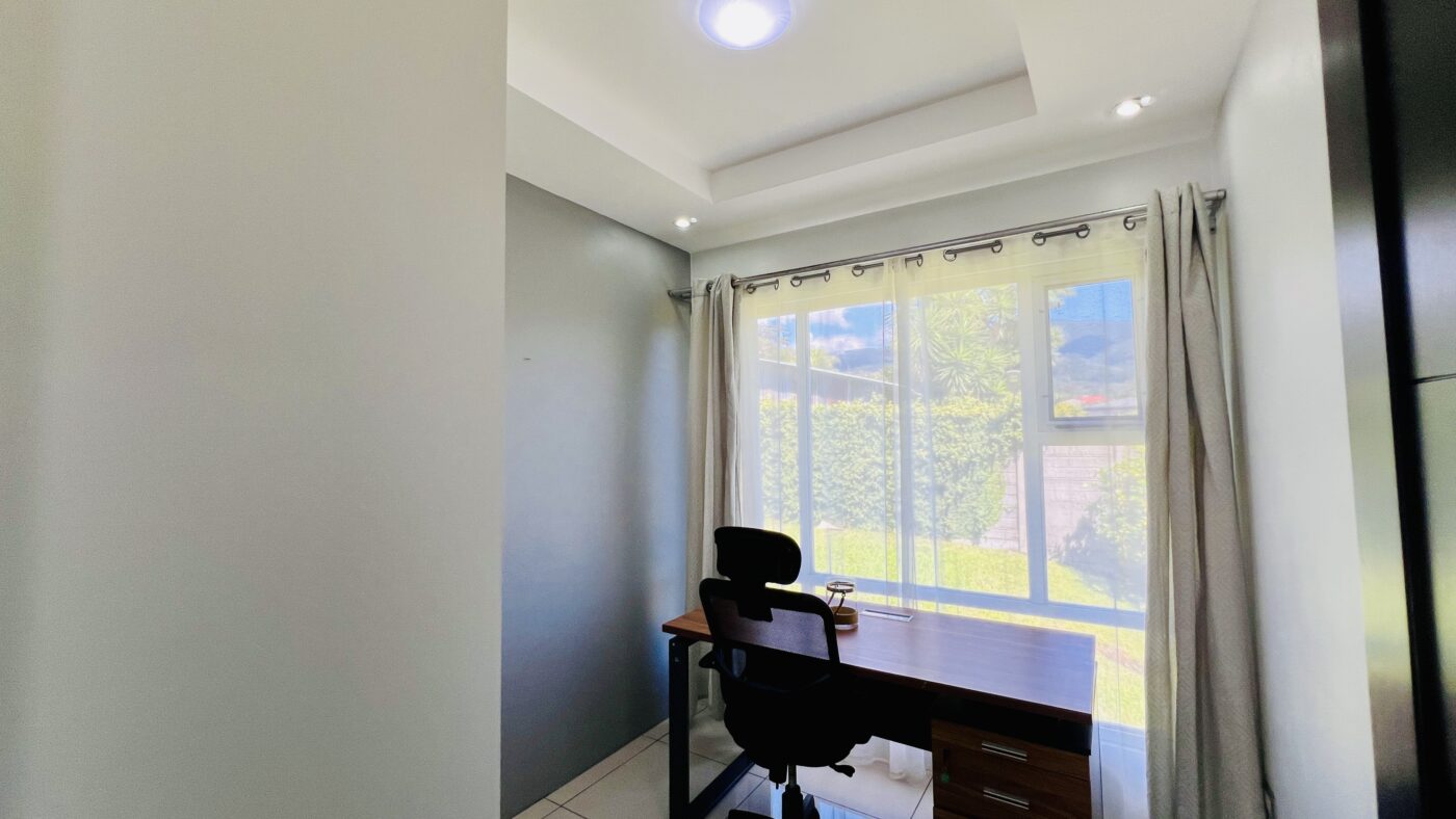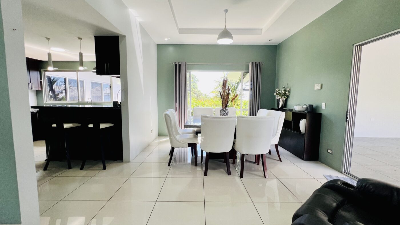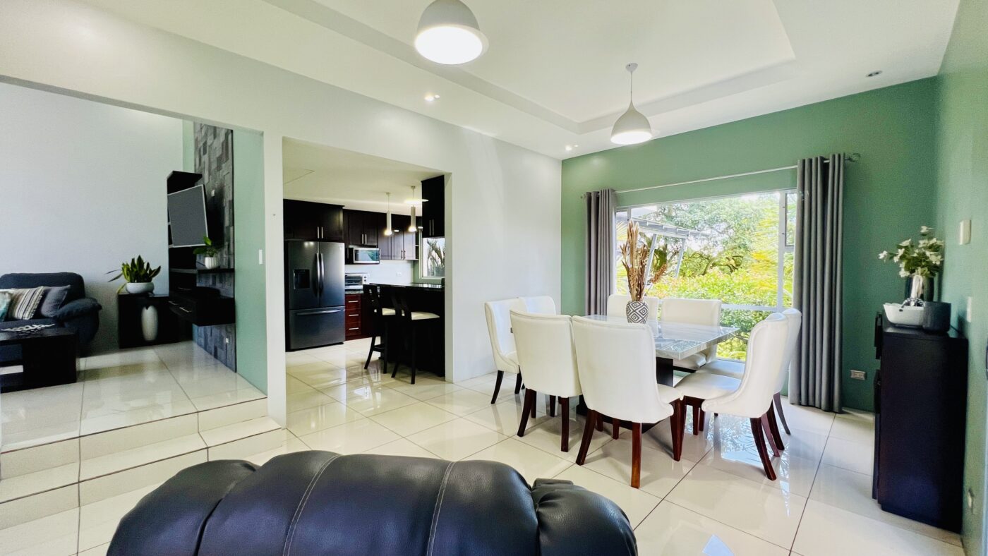 Los espacios sociales son generosos y bien integrados. La sala y el comedor se unen en un ambiente cálido y amplio, junto al espacio de cocina. Además, dispone de una oficina, amplia área de lavandería y espacio de parqueo para 3 carros.
