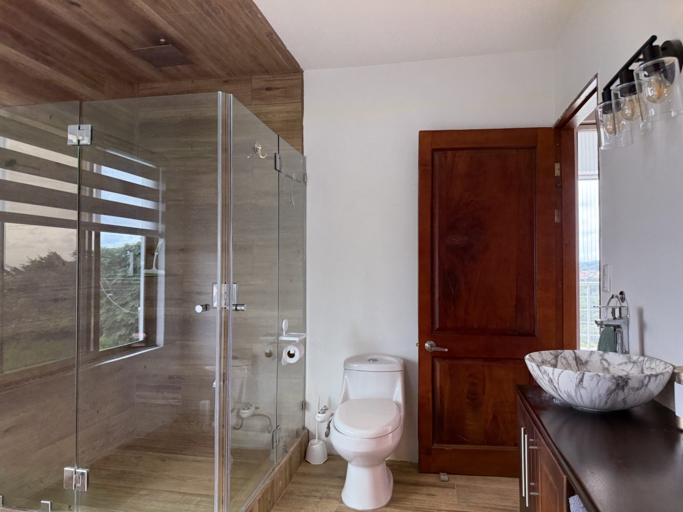 La habitación principal cuenta con un vestidor y un encantador baño completo. Hay una habitación de invitados con armarios empotrados y persianas con control remoto. Está ubicada en el lado oeste, por lo que sus invitados se dormirán encantados contemplando las luces centelleantes. ¡La terraza superior ofrece vistas aún más hermosas! Podrá ver el centro de Naranjo y partes de San Ramón.