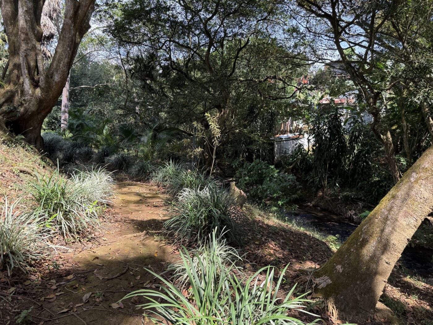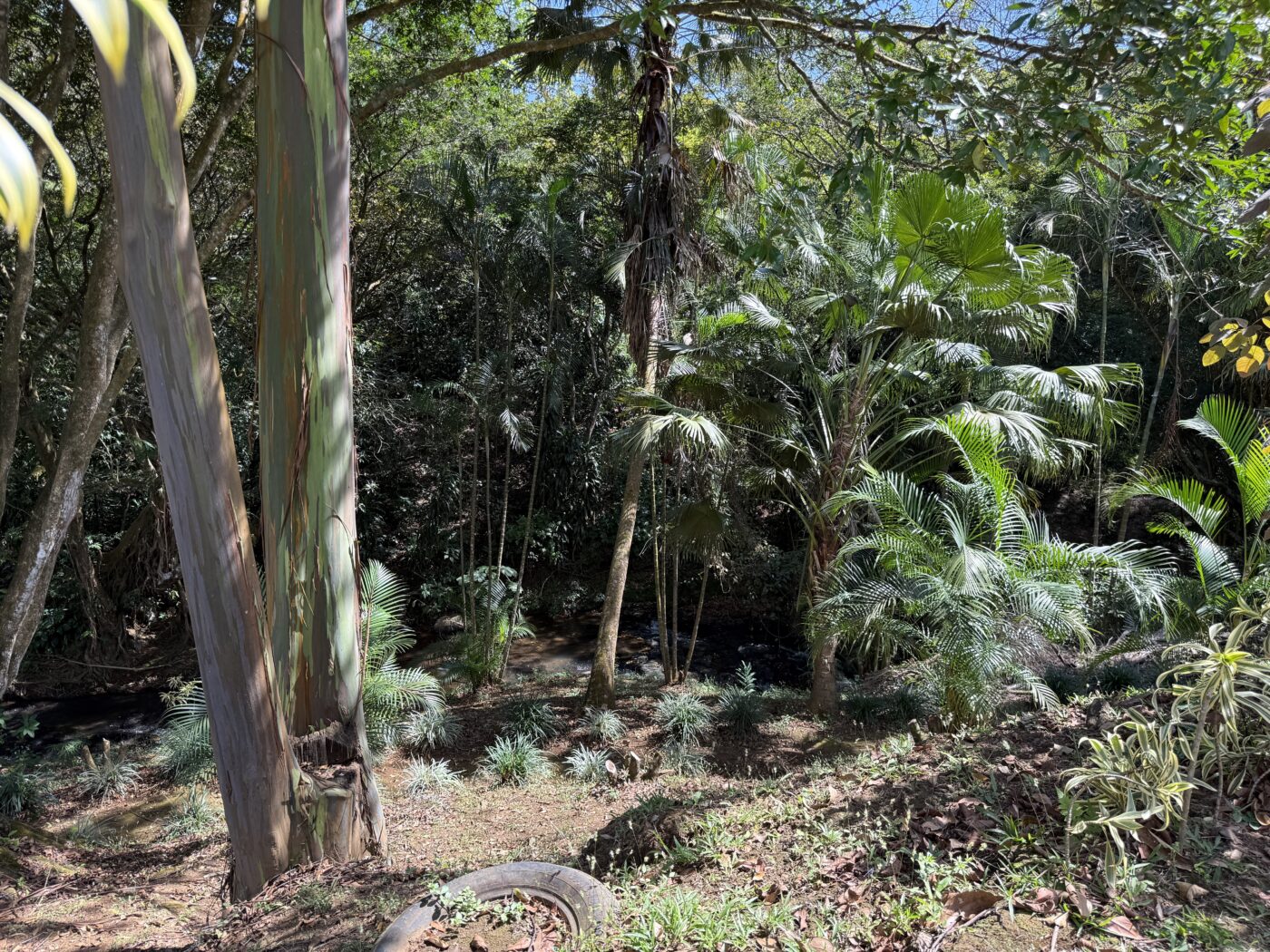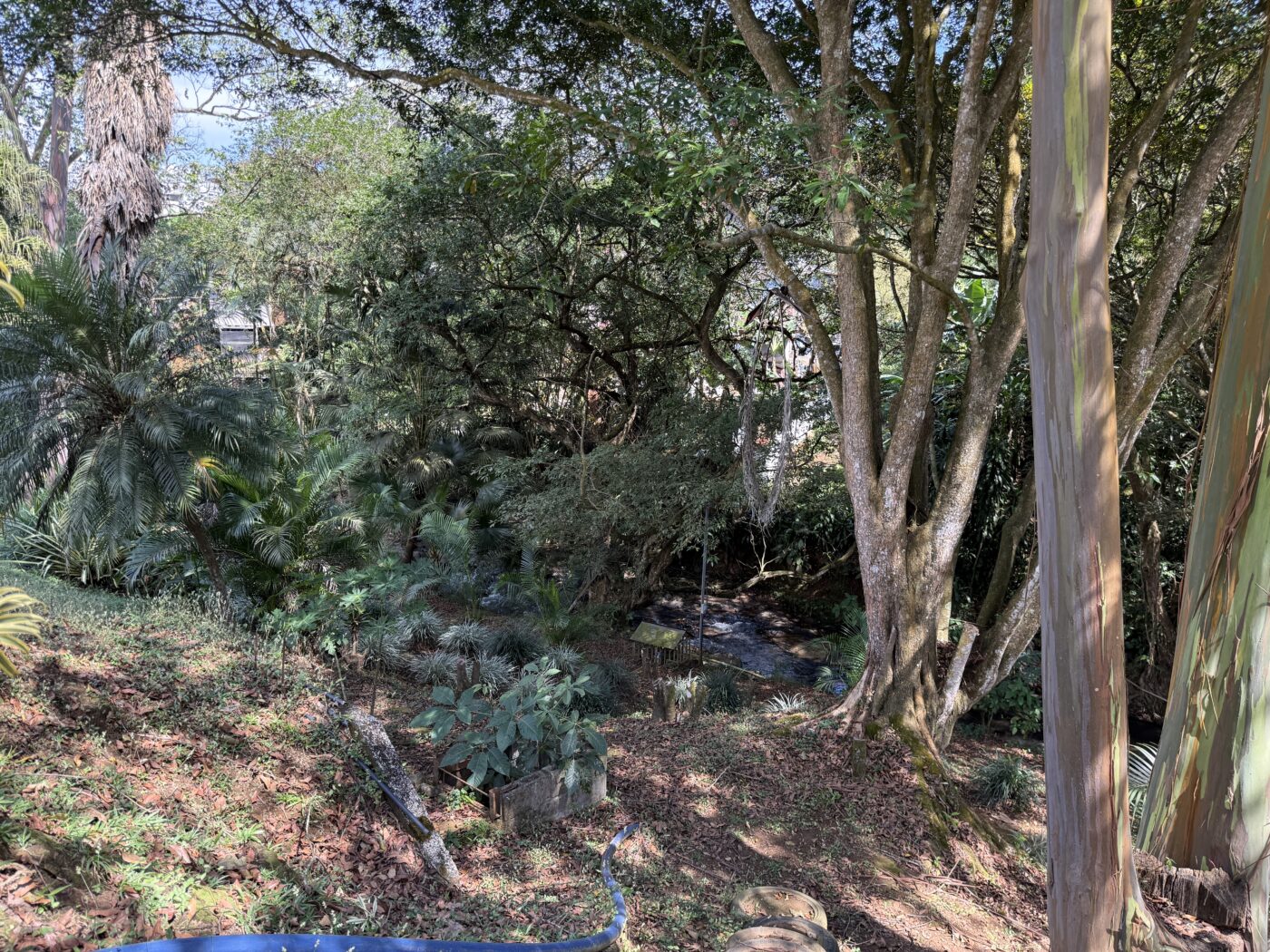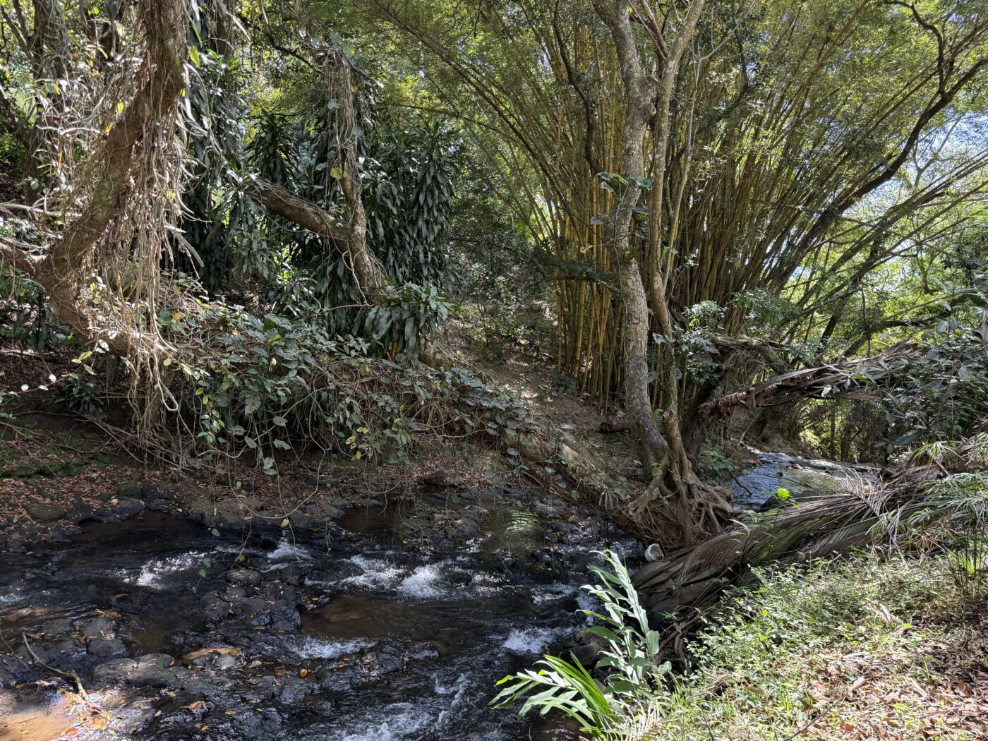 Let’s start with the 9 furnished cabins, each has its own little porch and bathroom. All are fully furnished and ready to be rented out. They all focus on the pretty Spanish-style fountain in the middle of the gardens. From the cabins, you can choose to meander down to the waterfall through the lush tropical gardens or hang out at the pool area, where there is a communal kitchen and covered rancho area. There is a storage area here as well as a tool room.