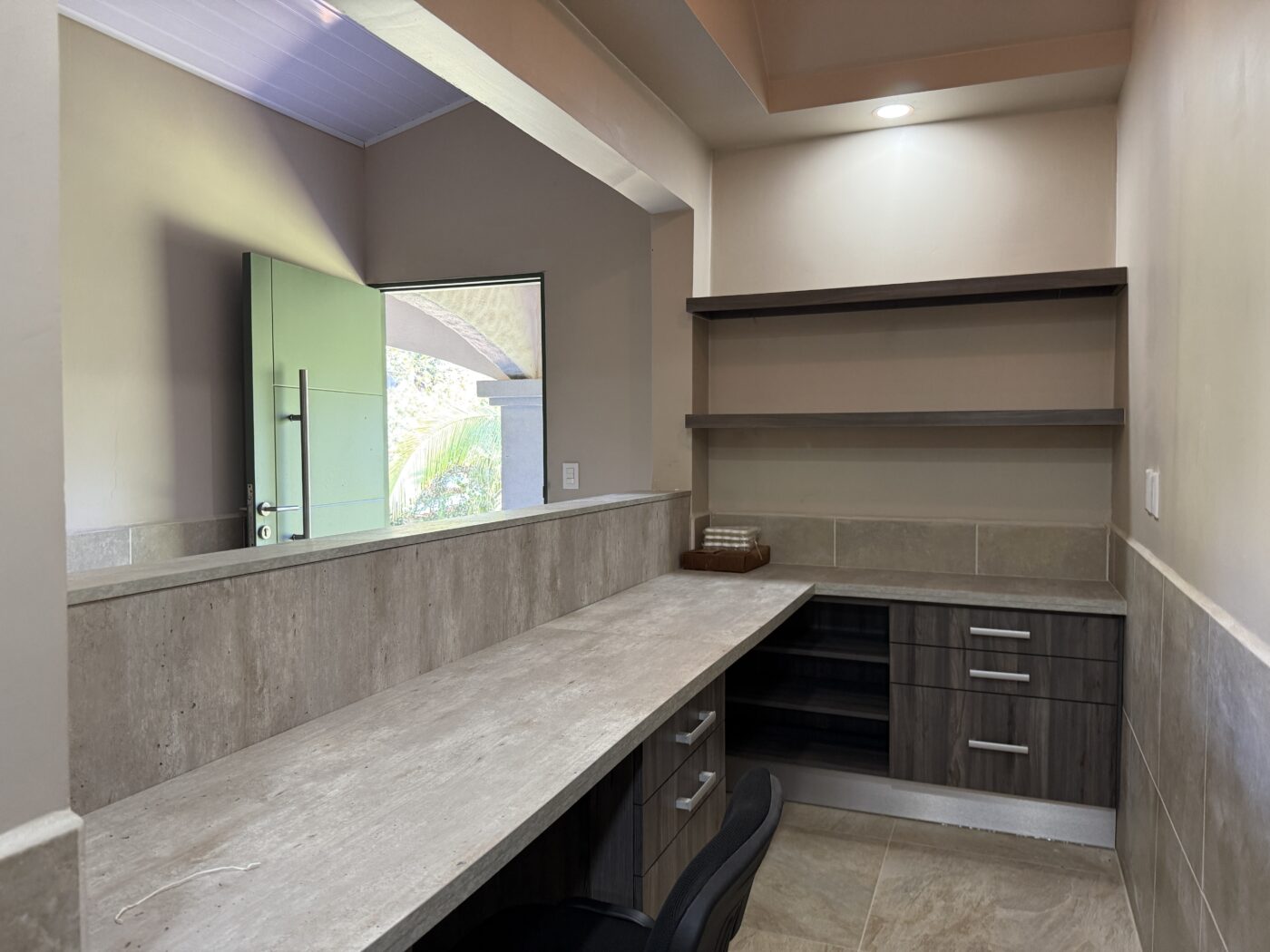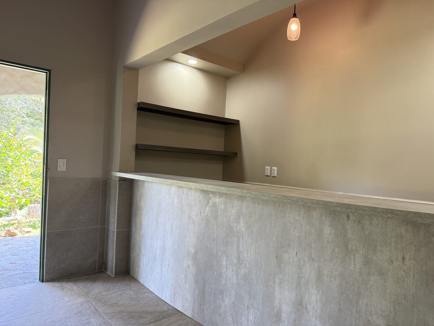 El área de la piscina cuenta con un bar en un nivel inferior y un bar en la piscina. Sus invitados disfrutarán relajándose en la piscina, disfrutando de bebidas tropicales mientras tucanes y loros vuelan sobre sus cabezas. La cocina común se puede convertir fácilmente en la cocina de ensueño de cualquier chef, donde podrá preparar platos deliciosos y saludables para sus invitados. Hay mucho espacio para mesas, sillas y el área de registro.