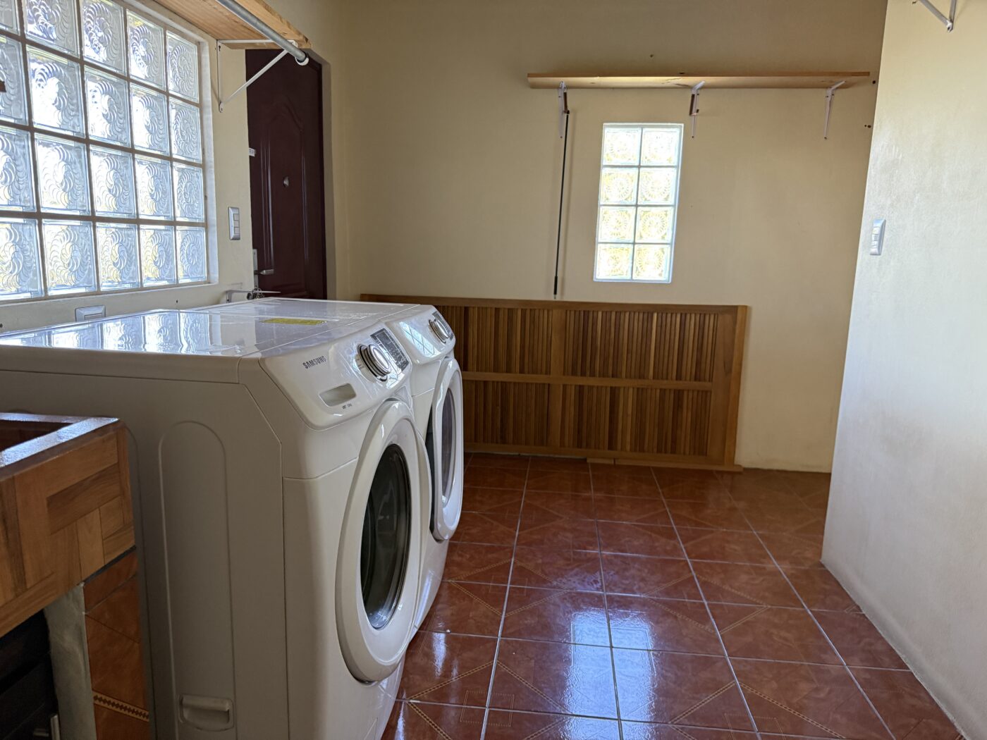 There is a garage, a laundry room and tons of storage. The house comes with a washer and dryer.