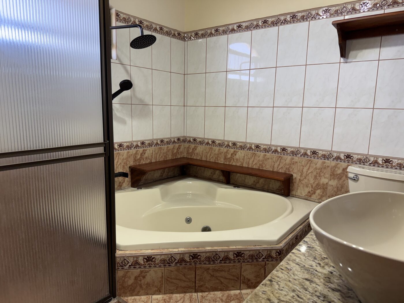 There is a gorgeous huge enclosed terrace looking northwest that you will undoubtedly spend most of your time in. The main bedroom also has these goregous views. There is an en-suite here as well. The main bathroom has a jacuzzi tub!