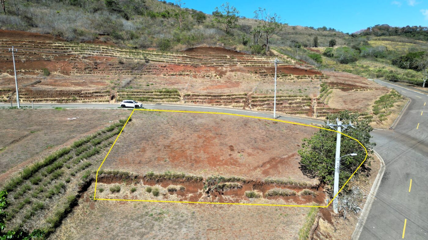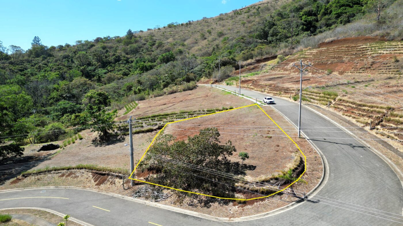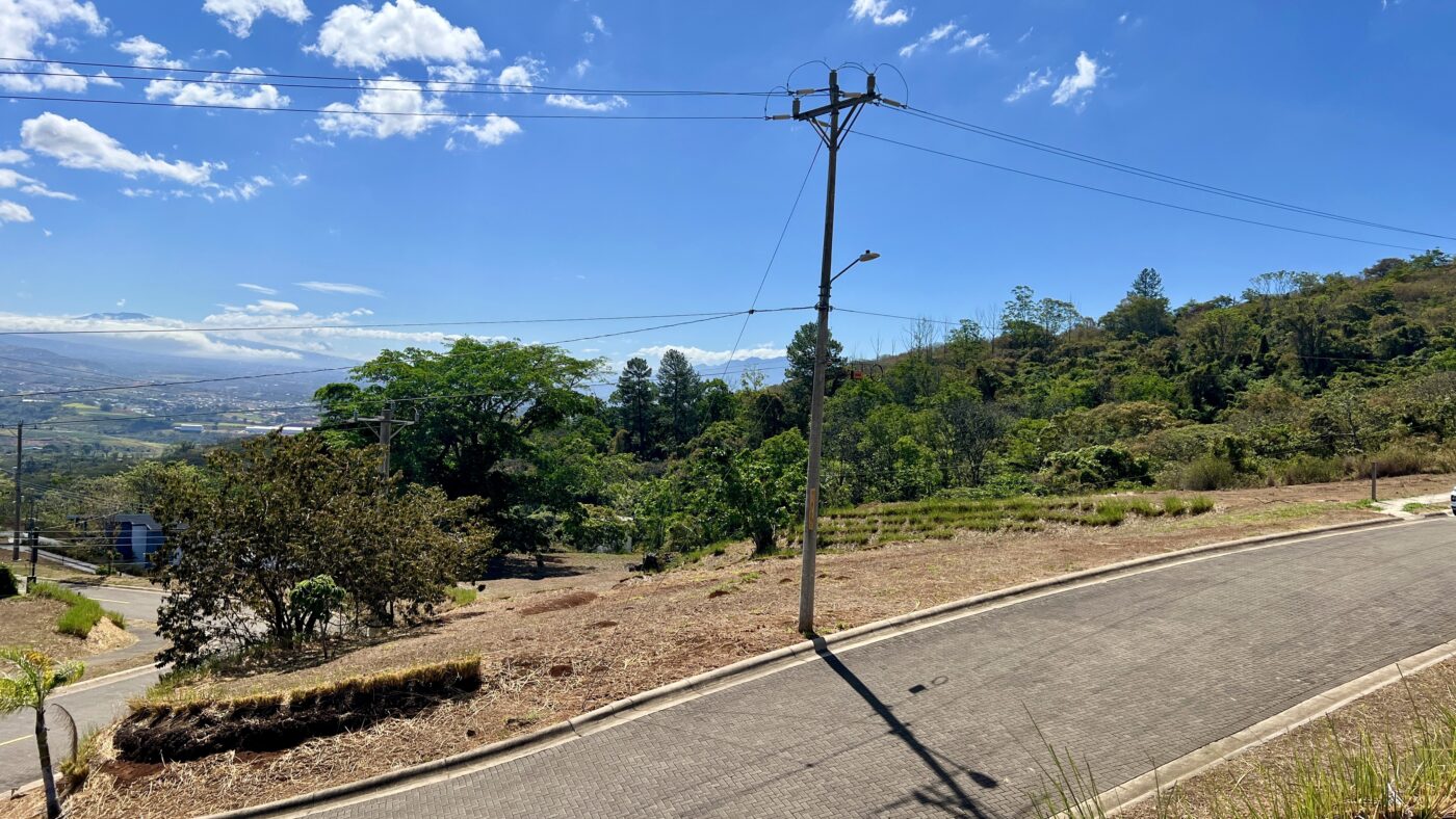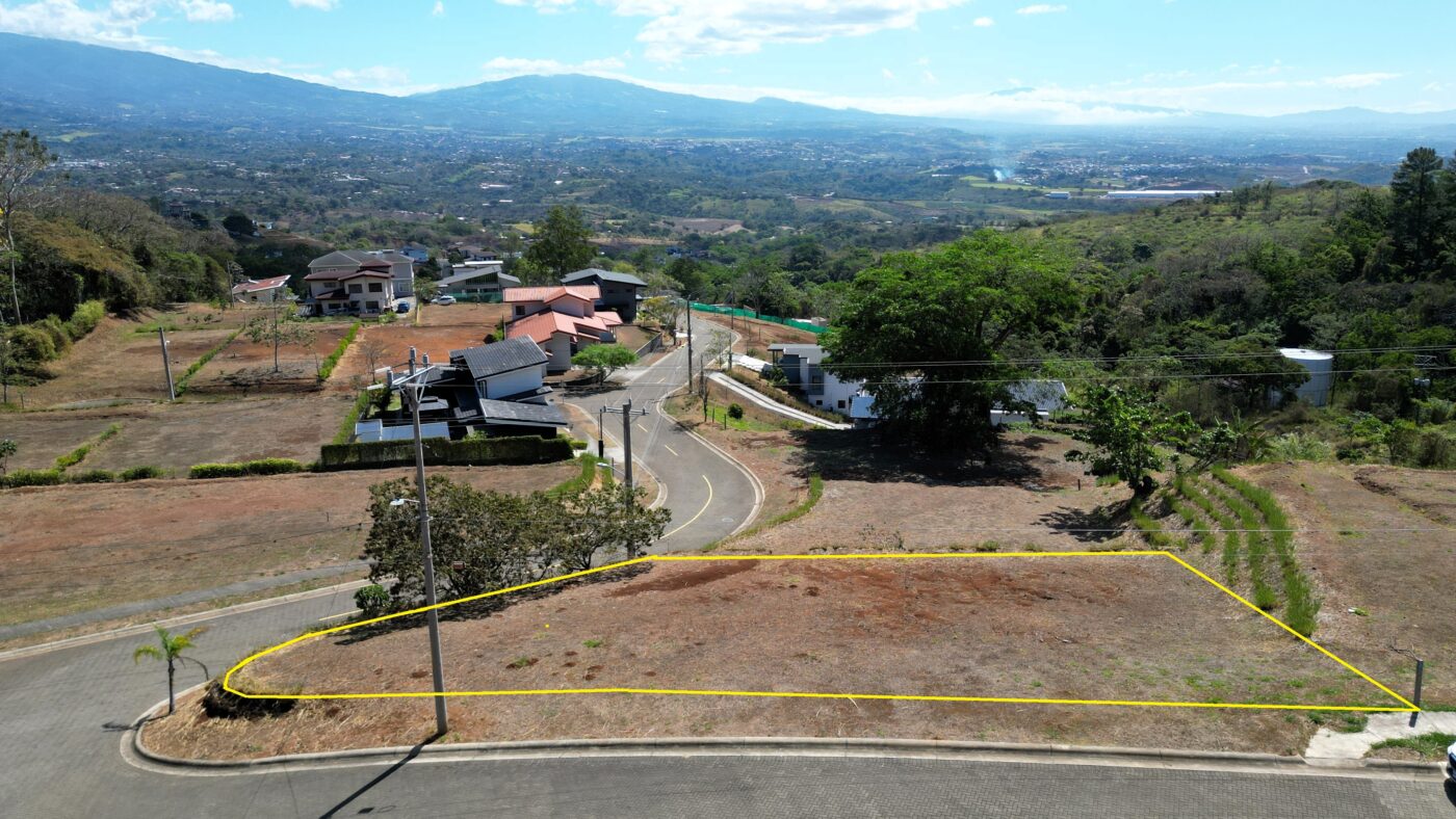 Ese bello lote esquinero tiene un área de 769 m2 y gracias a su ubicación, nos ofrece preciosas vistas al Valle Central y montañas vecinas.