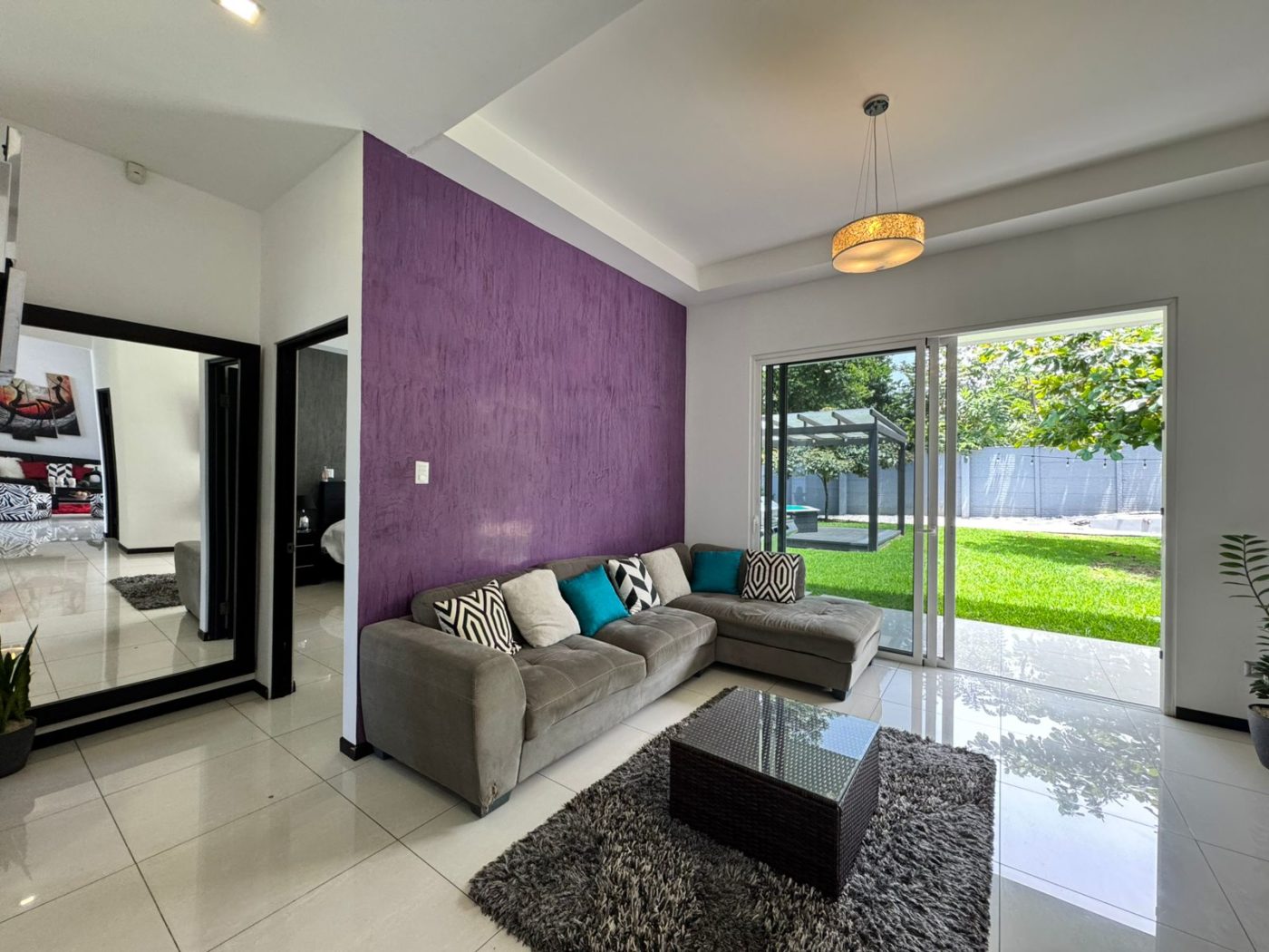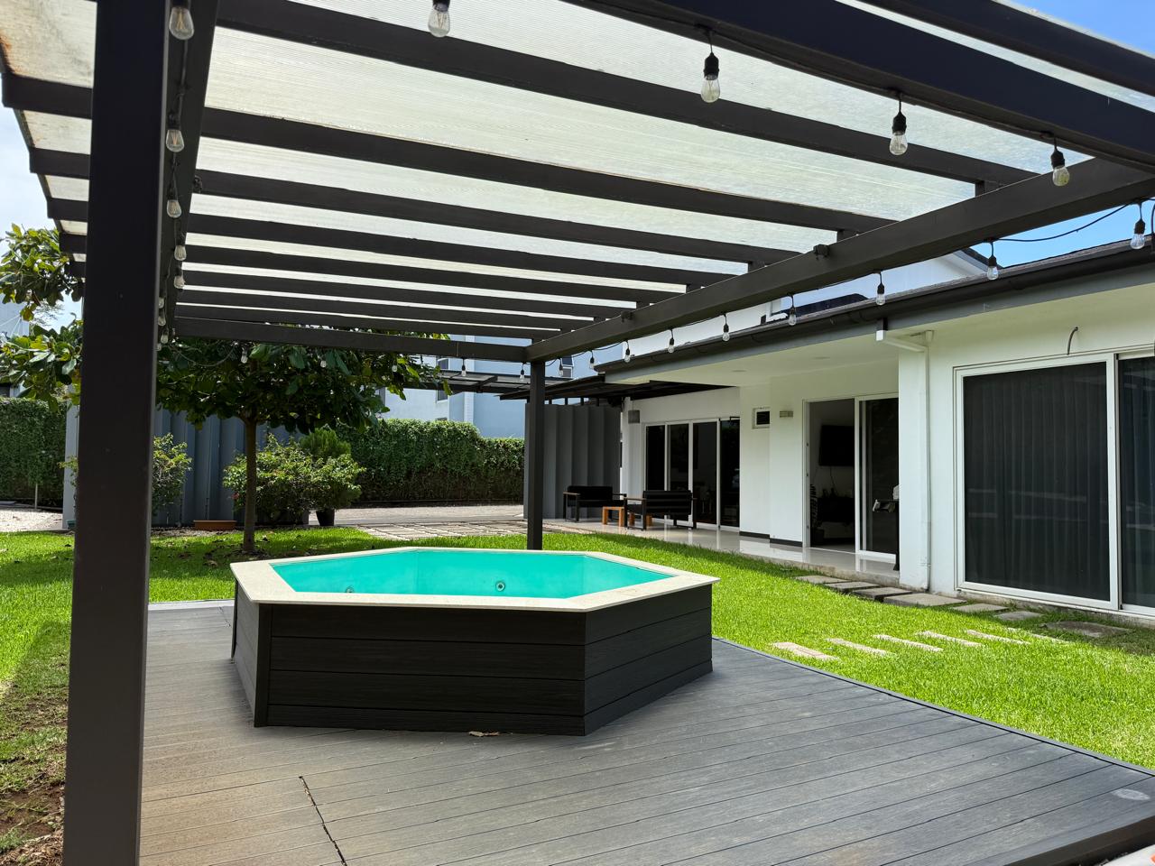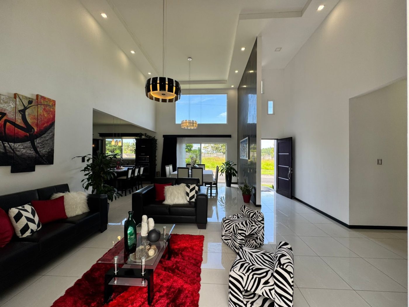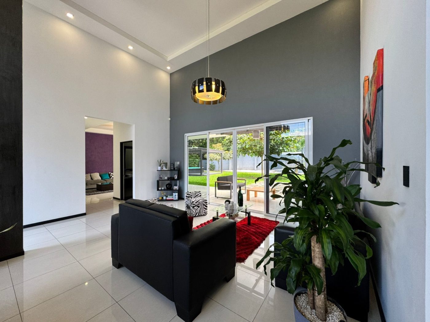Ubicada en el exclusivo Condominio La Garita en Alajuela, esta elegante residencia de una planta combina arquitectura moderna, acabados de lujo y una distribución funcional que privilegia el confort y el estilo de vida contemporáneo.