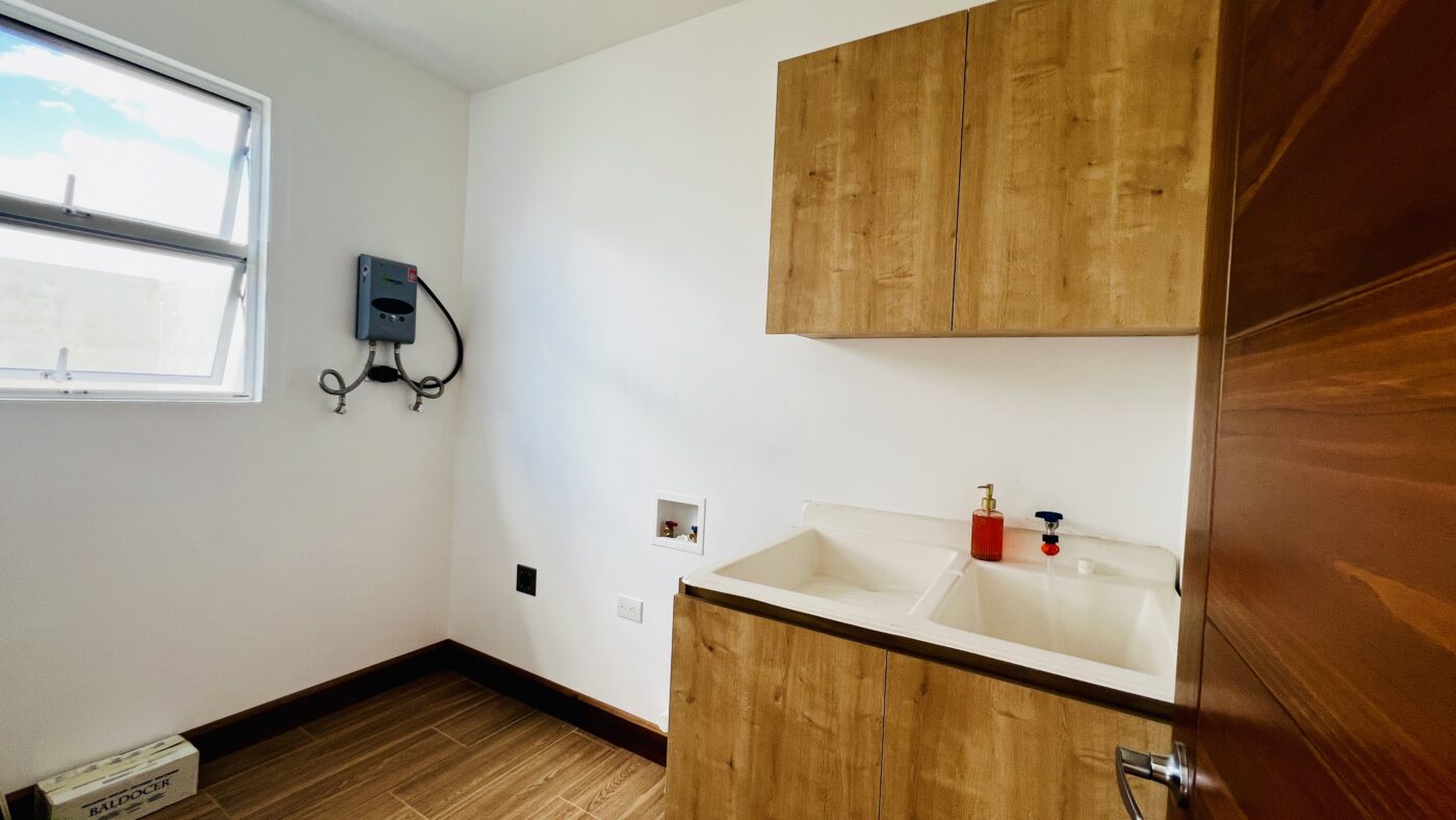 La vivienda destaca por su excelente calidad constructiva, siendo 100% en block y edificada con materiales de primera calidad en todos sus espacios. Cuenta con parqueo para dos vehículos y elegantes puertas de madera sólida de laurel, que aportan calidez y carácter al diseño.