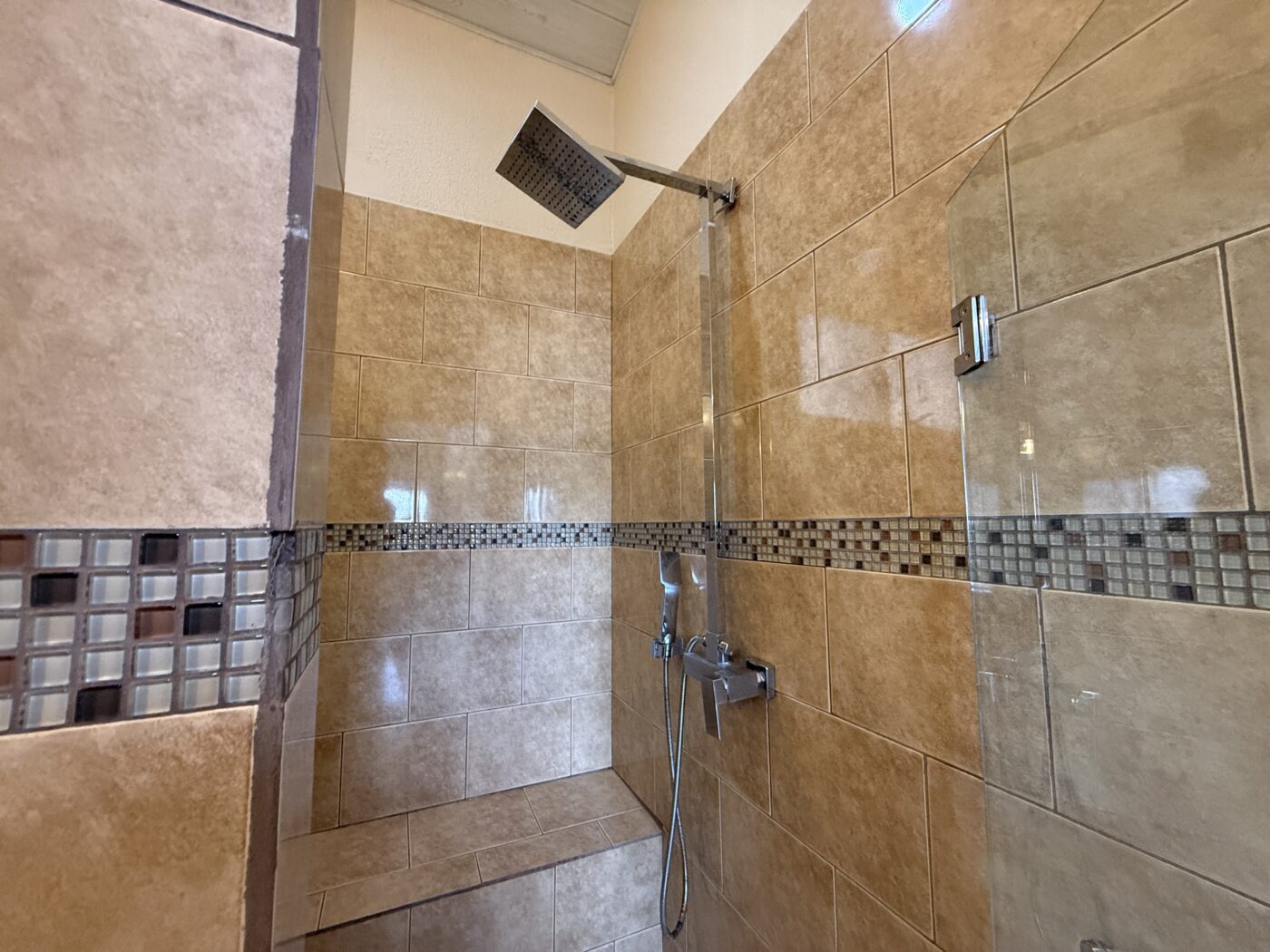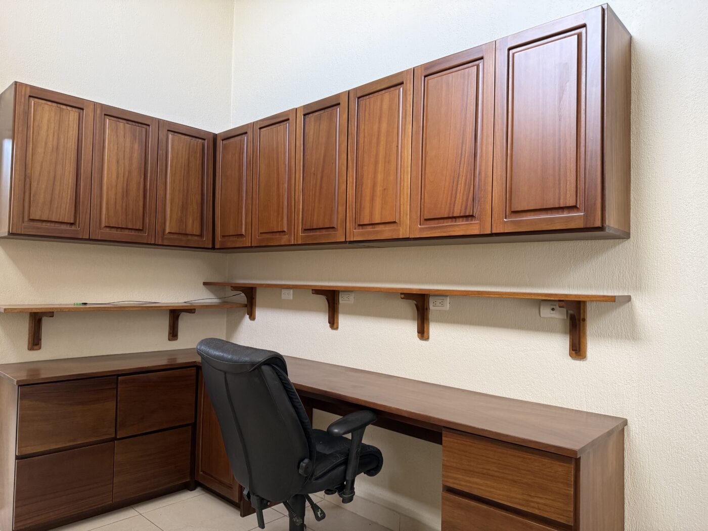 The main bedroom is a huge suite! There is a large office area with gorgeous cabinets and more storage! The bedroom has very hig ceilings and its’ own access to the terrace! There is room in here for a sitting area if you like that! There is a huge walk in closet and a full bathroom as well, all ensuite!