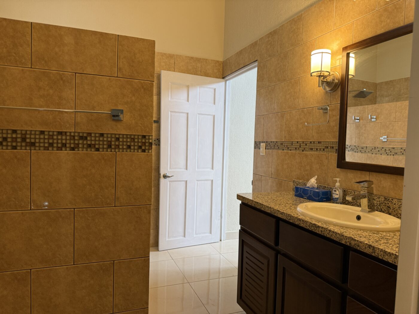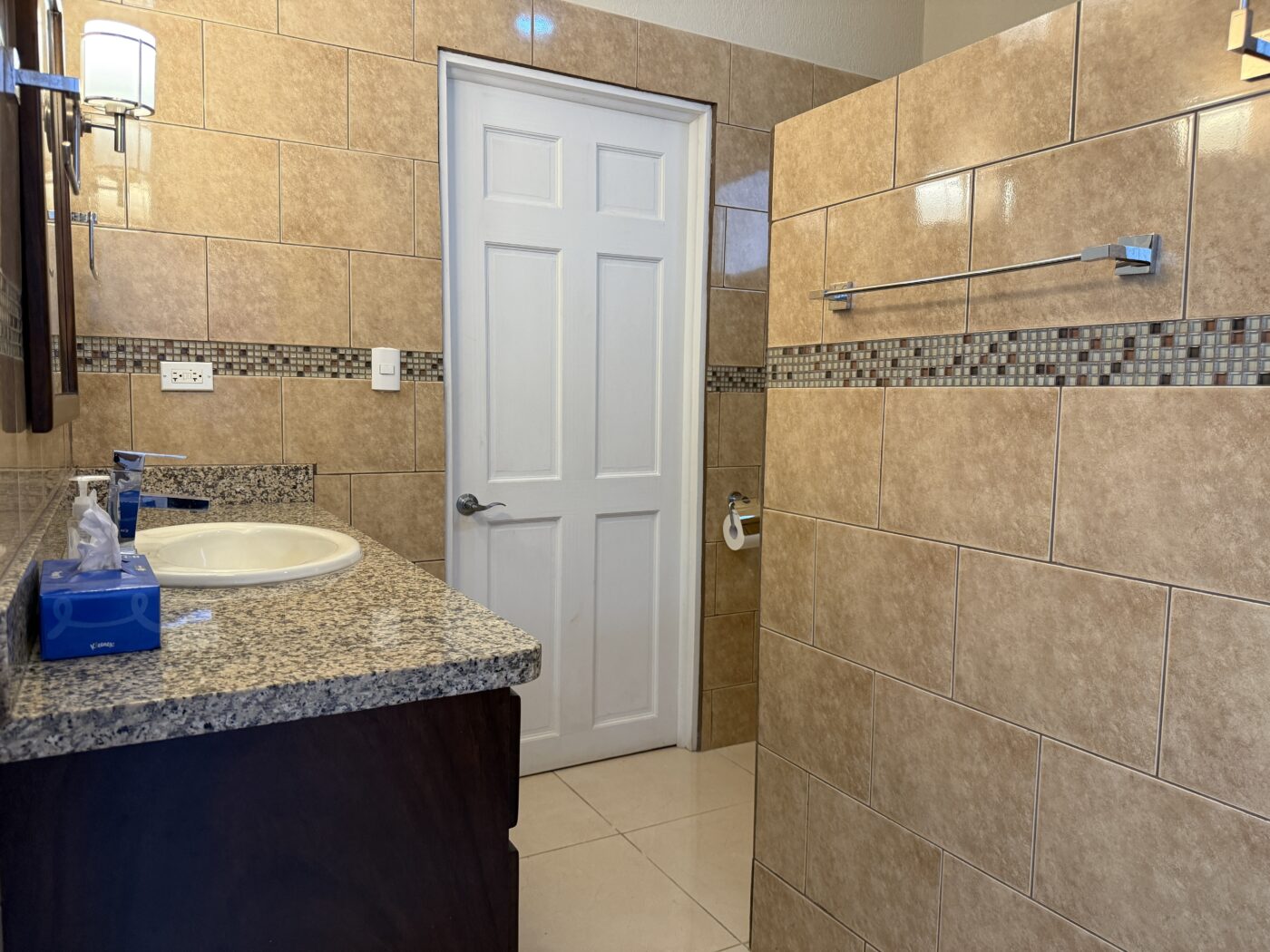 The guest bedroom has its’ own full bathroom and tons of space! There is an additonal full bathroom for guests to use makeing the total bathrooms to 3! The laundry room is huge and leads out to the back terrace area.