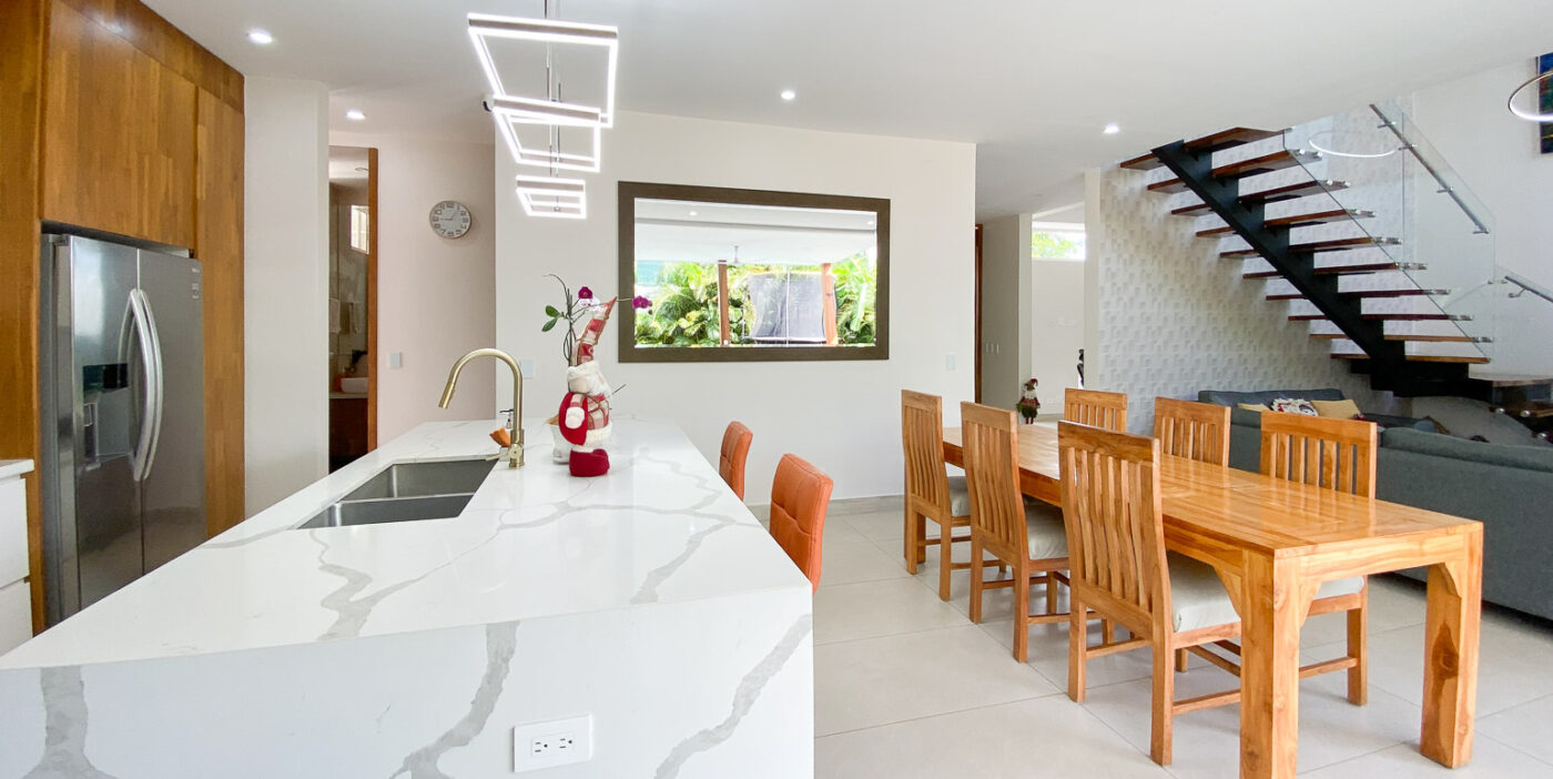 Esta hermosa casa en alquiler, de diseño moderno y contemporáneo, se alquila completamente amueblada y ofrece un ambiente cálido, relajante y lleno de luz natural. Sus amplios ventanales, detalles en madera y conexión con las áreas exteriores crean una sensación de bienestar desde el primer momento.